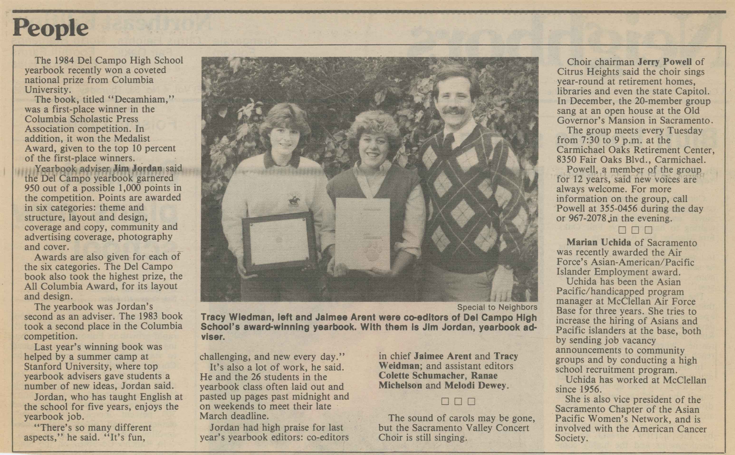 Sacramento Bee clipping about the 1984 Decamhian winning a Medalist Award from CSPA