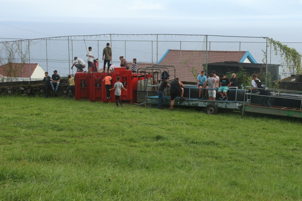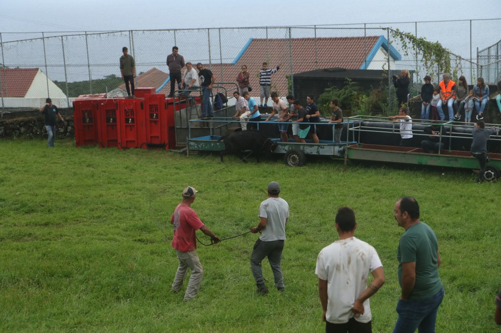Touradas á corda – the Azorean Bullfight. Once in a while when you are traveling in a country other than your own you can fall into seeing and participating in a real, local cultural event that you had no idea you would actually see. I had been reading a book written by an American journalist called “The Tenth island” about her love for the Azores specially the island of Terceira. In it she tells of the tradition of the touradas á corda a type of bullfight where the bull is guided by ropes and is not harmed in any way. The bull runs through the streets and can still ru you over, but its not totally free.