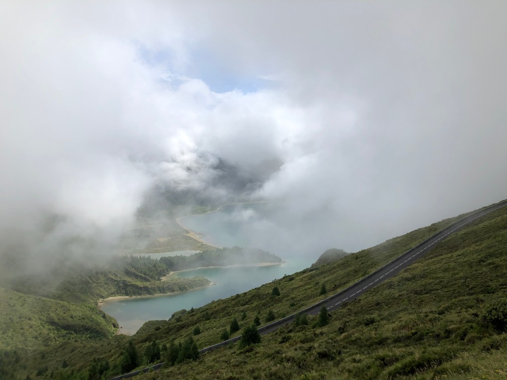 Day Three – Thursday, August 22, 2019 • Saõ Miguel • Morning Ocean Views • Caldiera das Sete Cidades • Arruda Pineapple Plantation. Today’s quest was to see the incredible views of the caldiera and two lakes at Sete Cidades – one blue, one green. For me these sights were the symbol of the volcanic beauty of Saõ Miguel and were definitely number one on my must-see list. Some days however nature does exactly what she wants to do when she wants to do it.