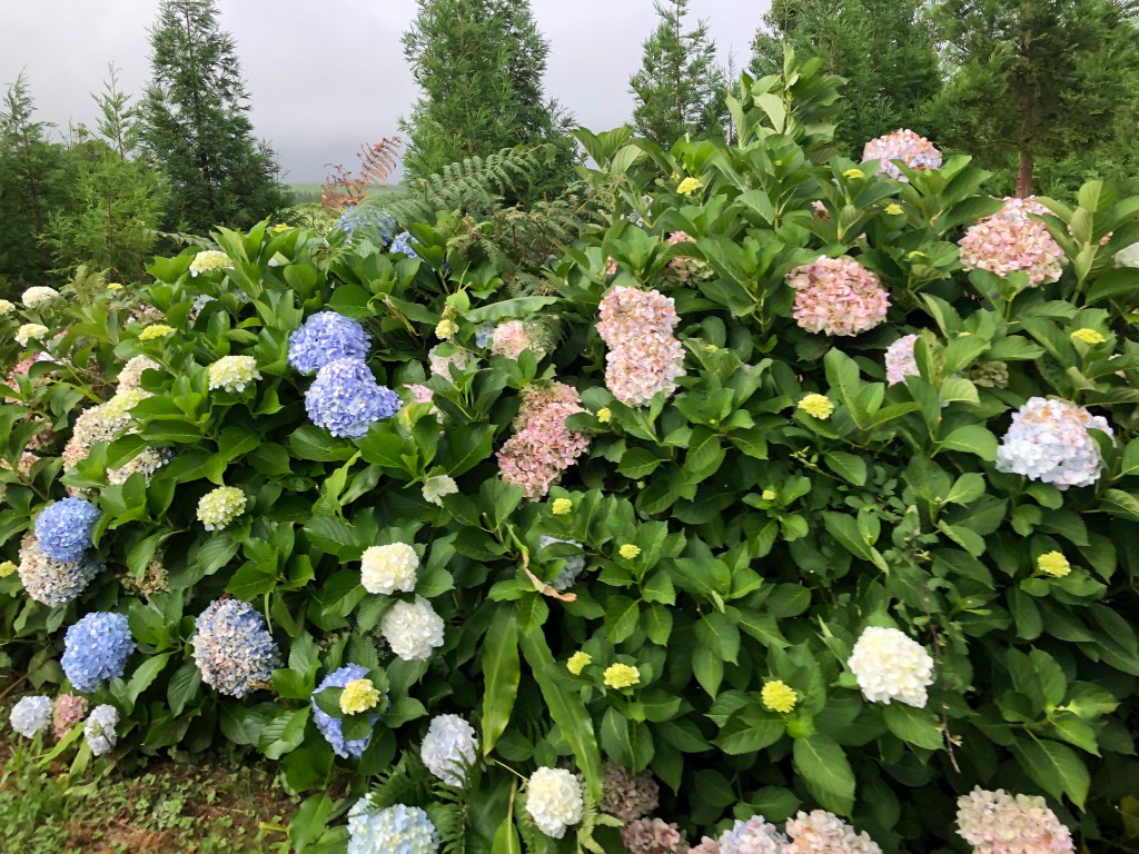 Quest for Furnas and its culinary delight, Cozidas. Our first goal was to see the town of Furnas and its famous hot springs. On the road we saw the amazing display of greenery a and colorful hydrangeas. From all we heard the hydrangea is not native to the Azores, but was imported from Asia. They have definitely taken over. Gorgeous to be sure. But the natives do not love them because they are not indigenous.