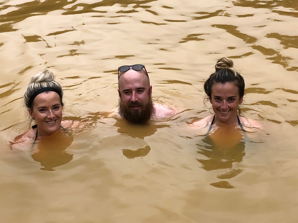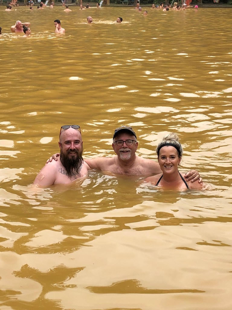 Brown water time. From there we moved up to the huge mineral bath. Would you get in water that was THIS COLOR. We did.