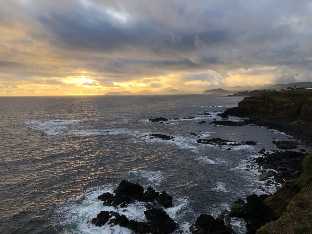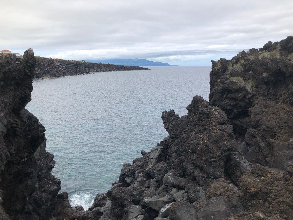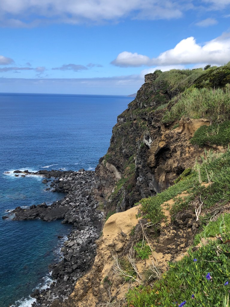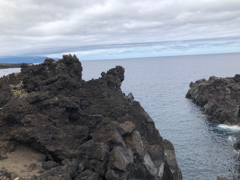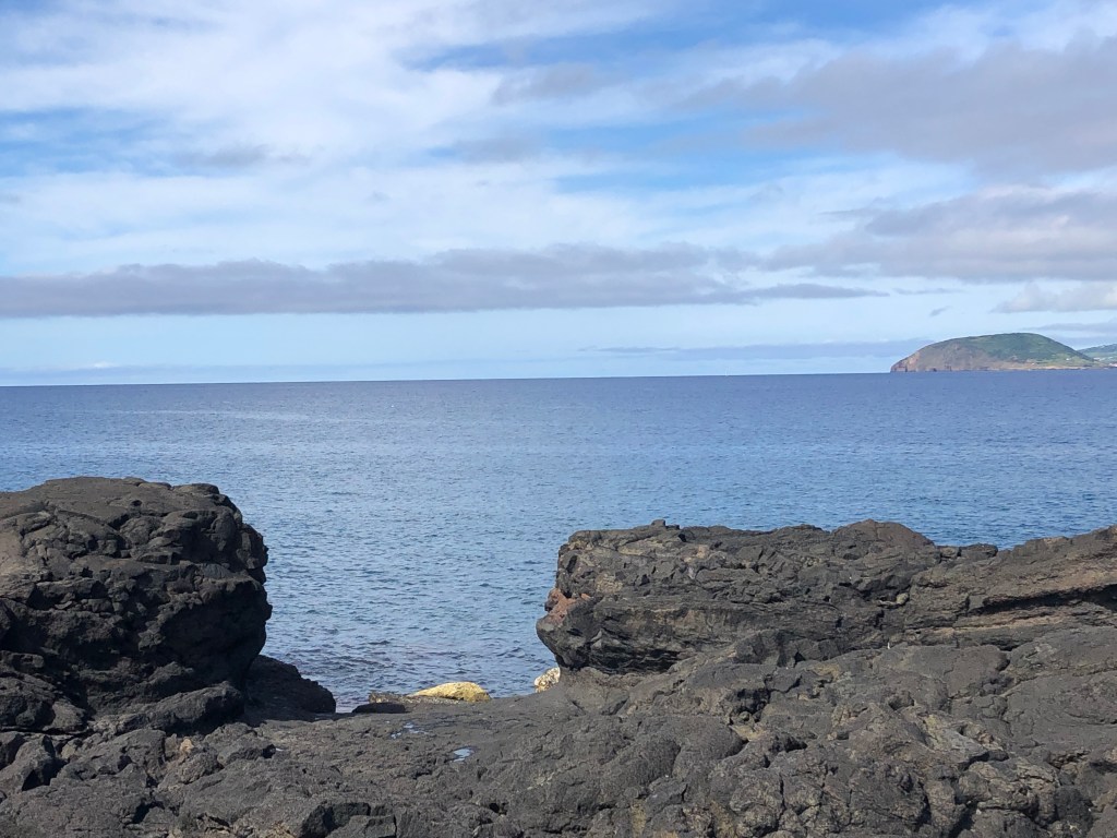 Day Four – Friday, August 23, 2019 • Saõ Miguel • Morning Beauty • Turning in the Van • Hanging out in the Airport – One long day • Making it to Pico. Began our last day in Saõ Miguel by walking the other way along the shore toward the town. What amazing views lay in store.