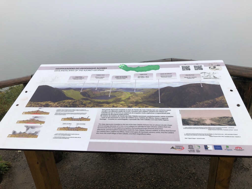 This is the spot. It was super confusing to know for sure where exactly the viewing spot was. The Sete Cidades sign is directing you to the town and the name of the lake on the big sign makes it seem that where you are is at Lagoa Canario. The key is the big gate. Some guidebooks say it is closed at times and you have to walk all the way in. If the gate is open drive as far back as you can. We did not realize this and had a nice 20-minute hike in.