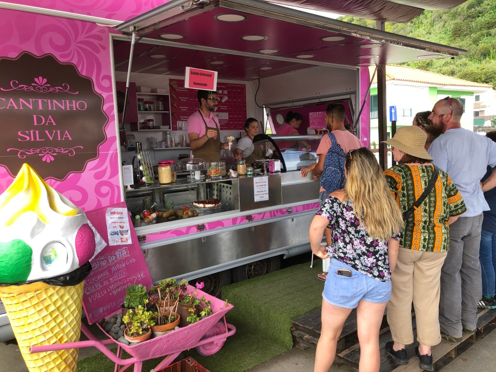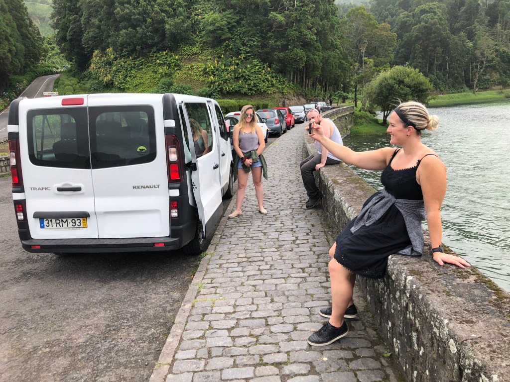 Day One – Tuesday, August 20, 2019 • Saõ Miguel • Pedras do Mar Resort • Lagoa do Fogo. Once at JFK, it’s a less than five-hour flight to Saô Miguel. We left around 10 p.m. and arrived in the Azores before 9 a.m. We picked up our nine-passenger Renault standard-shift mega van right at the airport and were off on our adventure. Cap’n Christine was our driver as she is an ace with a stick shift.