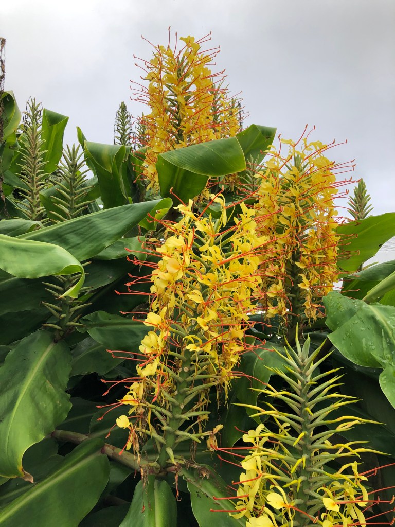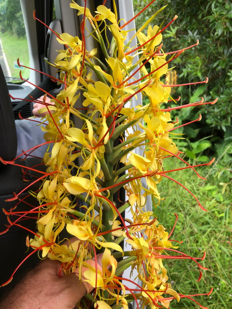 Ginger Lily. Claudia pulled over and picked a ginger lily and we sipped the sweetness from the stems. Natural sweetener where we get Stevia.