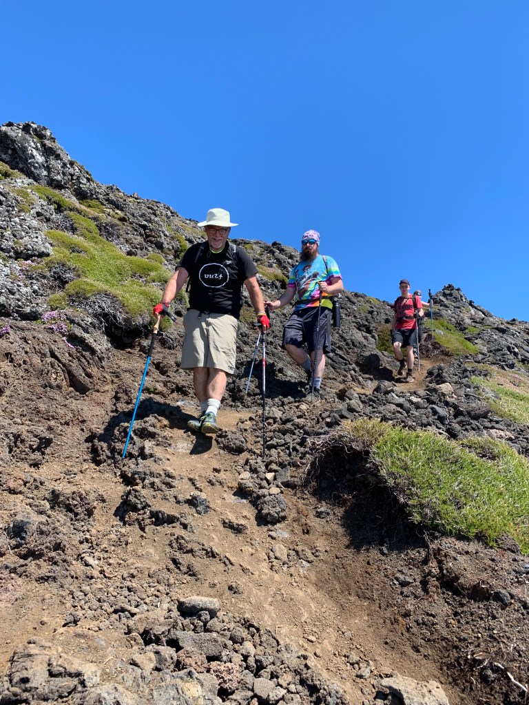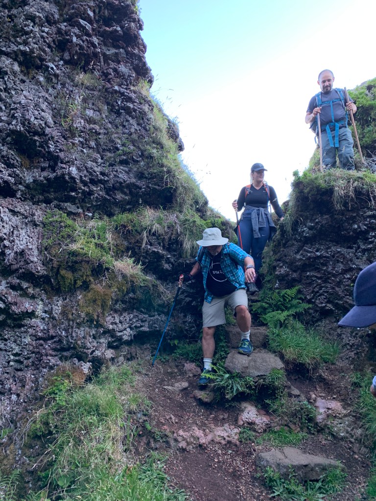 Hanging on for dear Life. You do not take many photos when you are putting all your concentration into every step of getting down the mountain. Eventually the couples from Italy and Finland and Zoë went ahead which left Kate and Robert and Nuno to coach me down. As we went Nuno would show me with his walking sticks the places I need to step so I wouldn’t slip. I got into that mode where I would ask “How much longer?” And the answer always seemed to be “About an hour.”