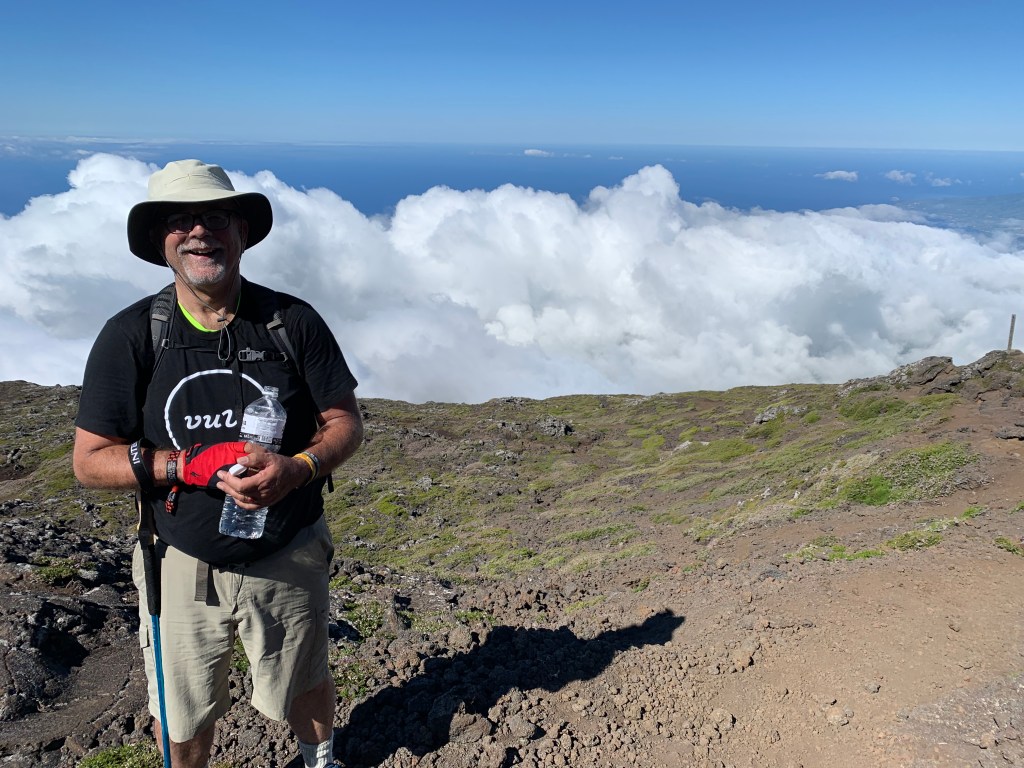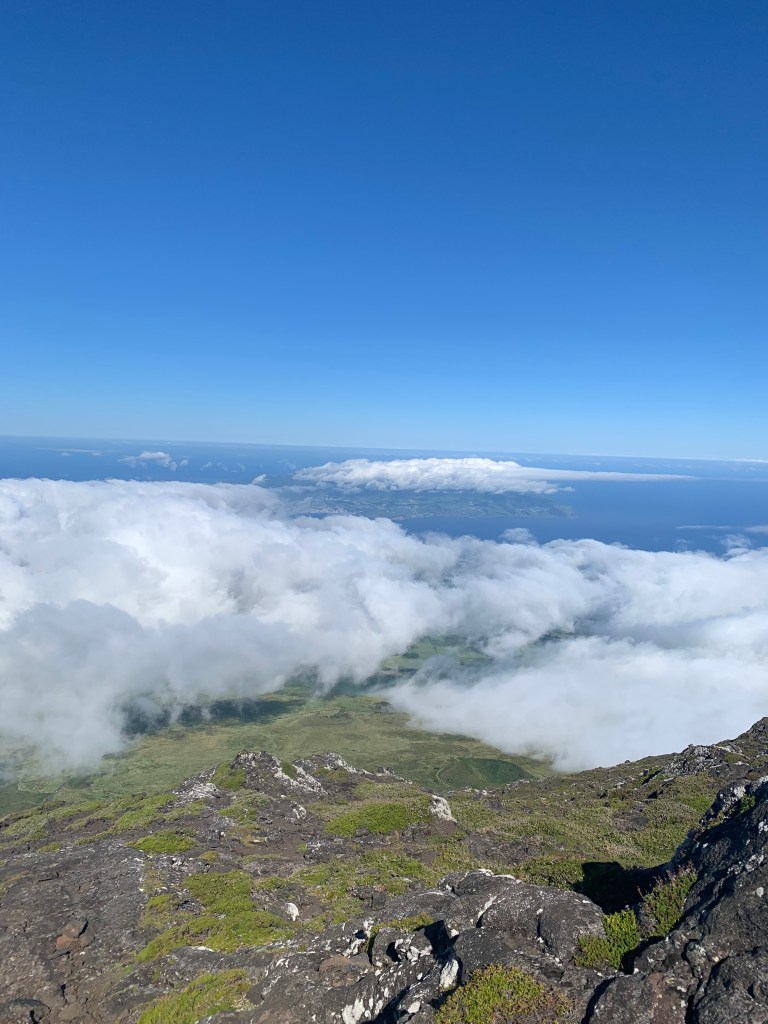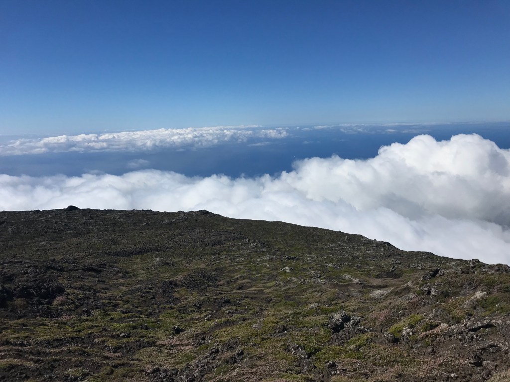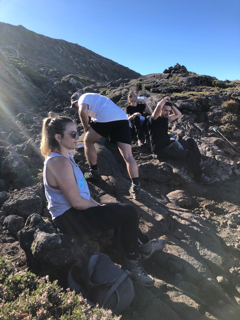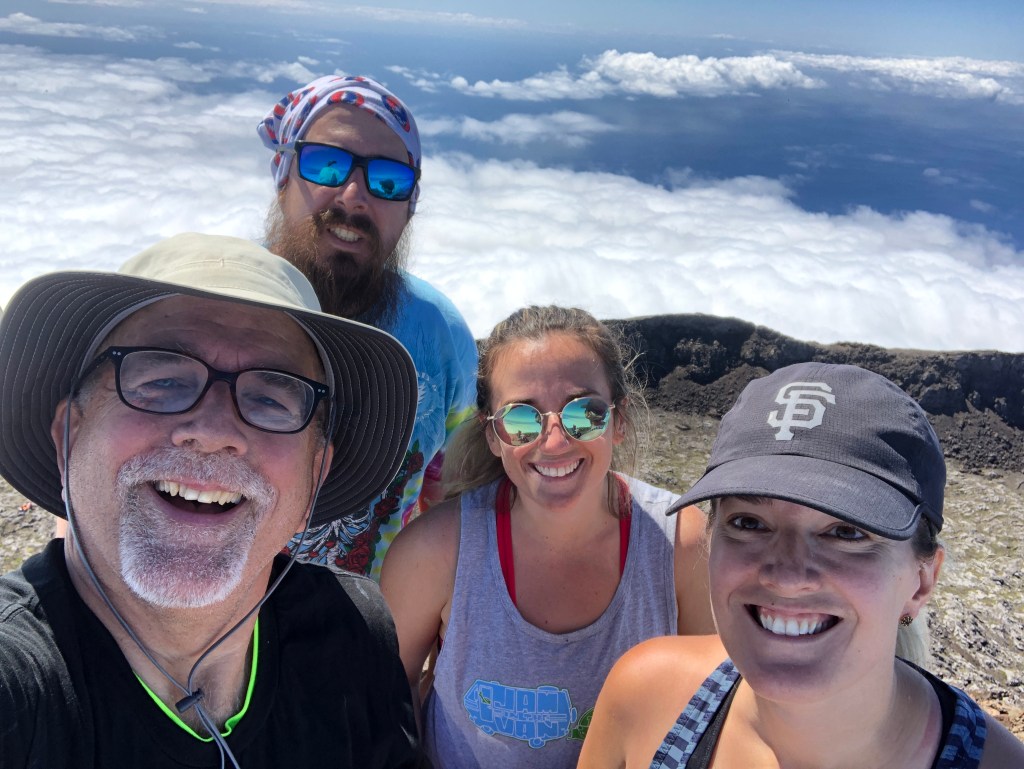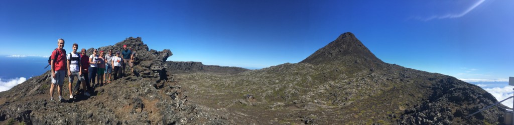 WE MADE IT! How exhilarating to make it to the summit after nearly five hours of climbing. From this vantage point we could see five of the islands – Pico, Faial, Saõ George, and Graciosa.
