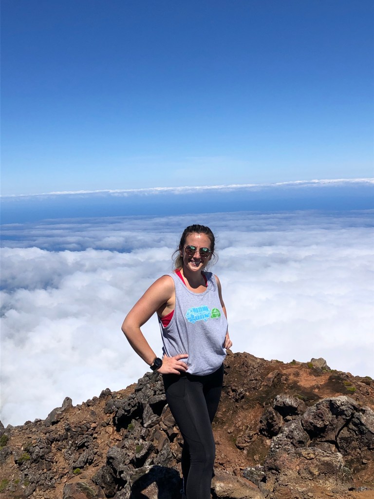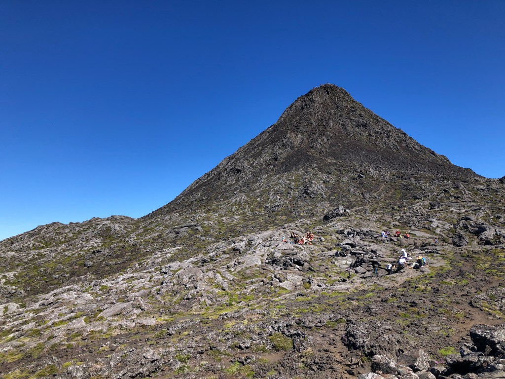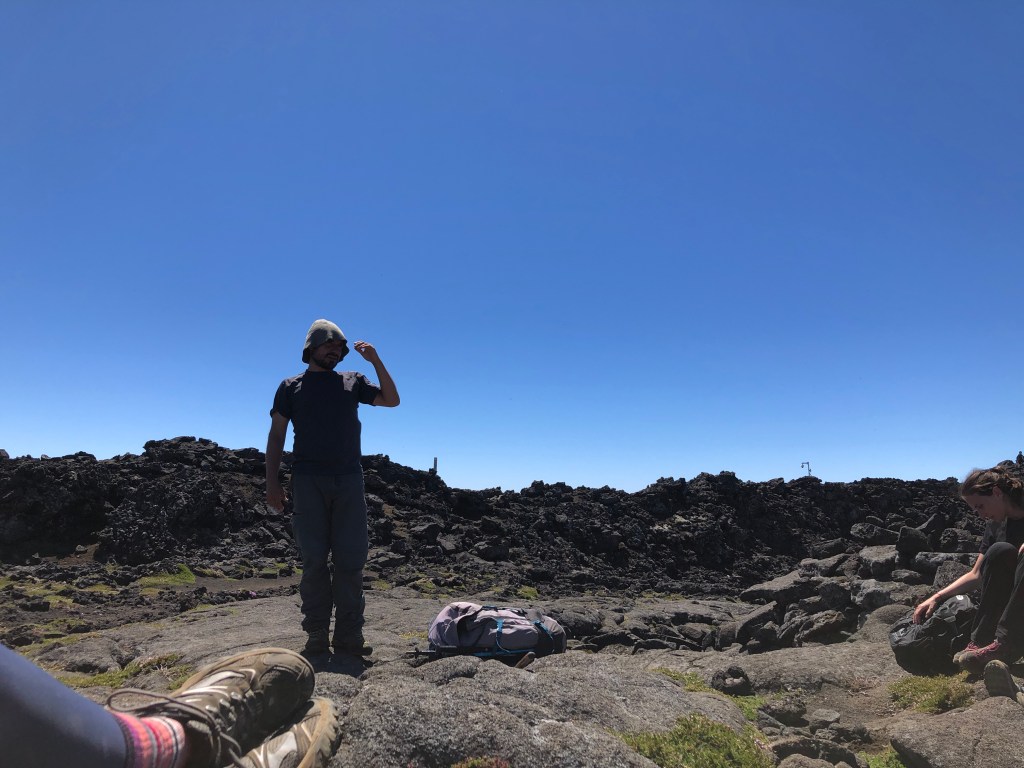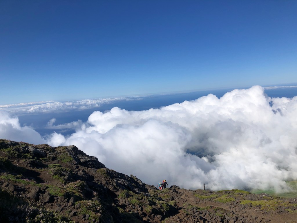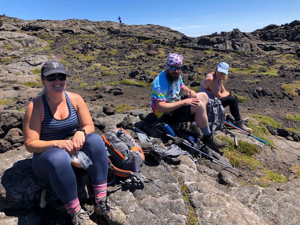 WE MADE IT! How exhilarating to make it to the summit after nearly five hours of climbing. From this vantage point we could see five of the islands – Pico, Faial, Saõ George, and Graciosa.
