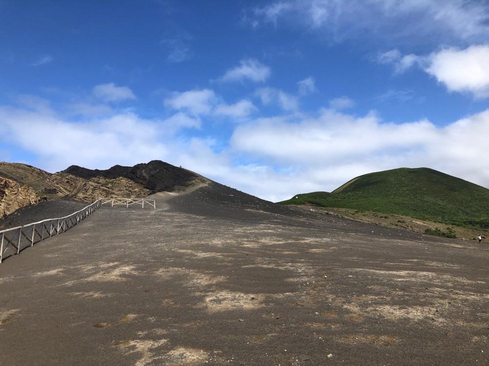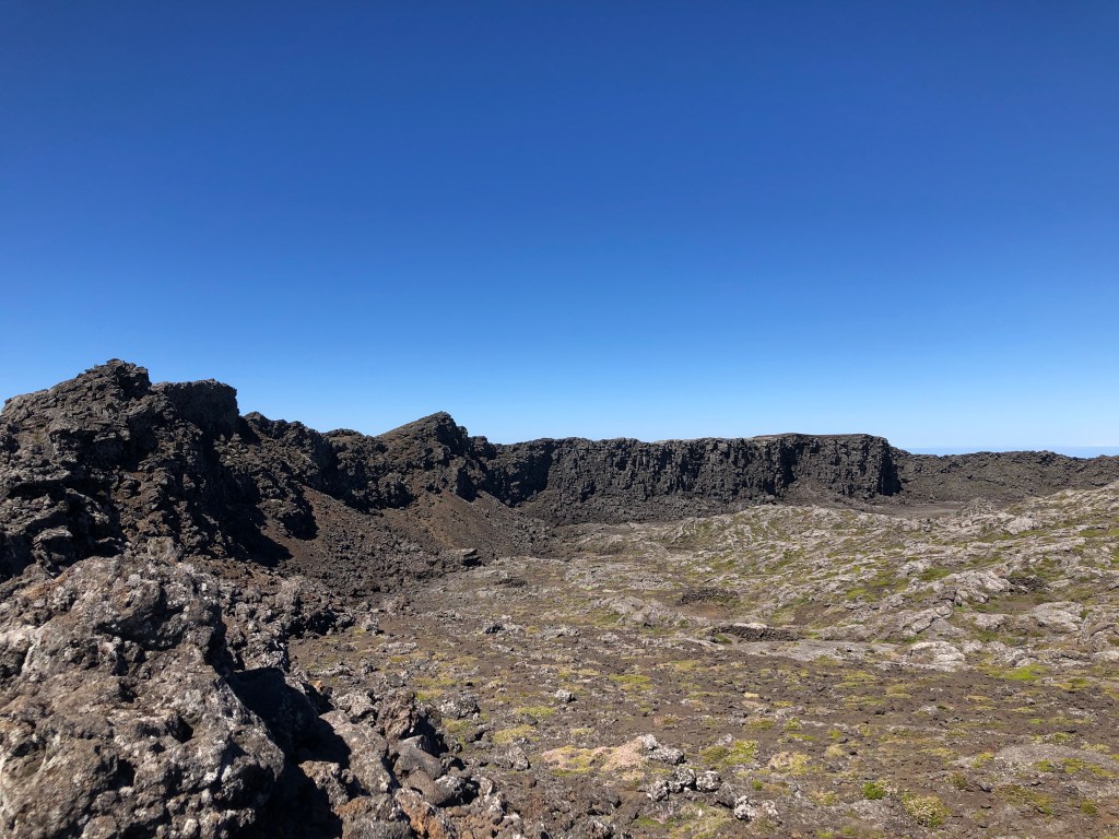 Pico Summit (part 1) – The Crater. There are really two summits of Mt. Pico. The first comes when you have climbed between pole 1 and 45. The terrain flattens out and you can see into the crater. It looks like a gorgeous moonscape with blazing blue sky above.
