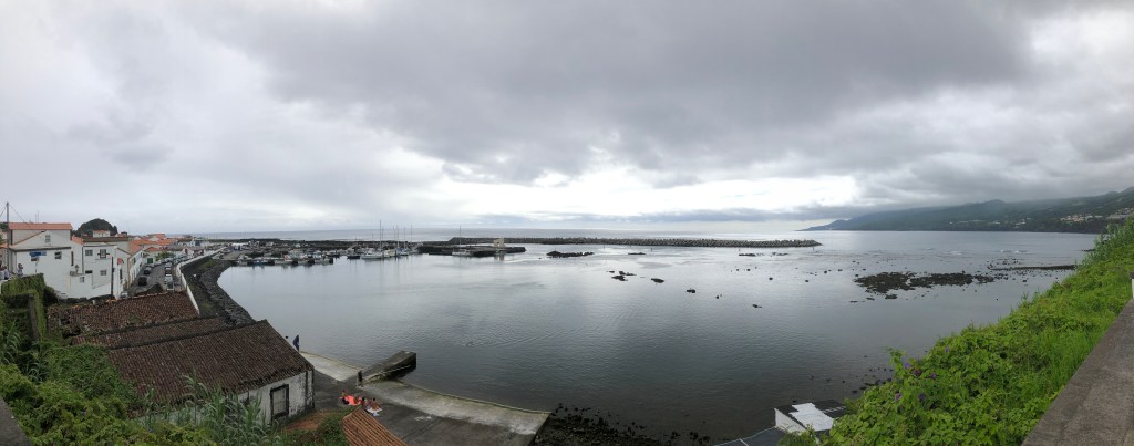 Madelena harbor view in the morning. Began the morning with a walk to the store and took in these gorgeous views of Madalena harbor over to Faial.