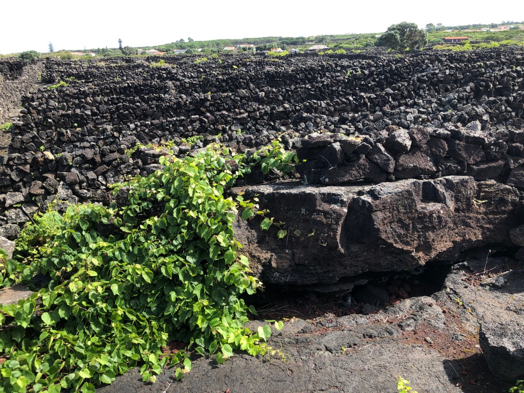 Pico Wine Tour. We spent most of the morning touring the vineyard area near Madelena. The most amazing aspect of the wine area is that they do not stake the vines. They grow low to the ground in the rich volcanic soil with lava rock walls surrounding each set of vines.