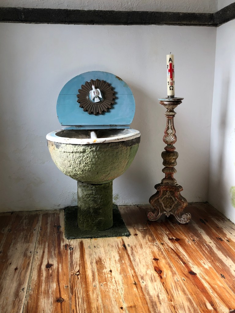 Lava Church in Urzelina. This church was over run by lava in the eruption of 1808 – all but the tower. This also was the place where Christine stepped off a ledge and could have seriously hurt herself.