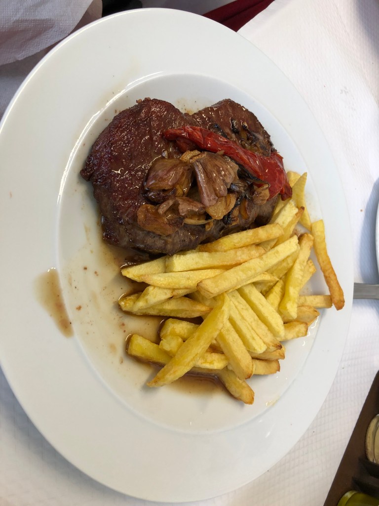 Alianca Restaurant. Our cab driver recommended this place or great steaks. He said the fish was not fresh in Ponta Delgada and that beef was the way to go. The steak was fantastic and definitely did not disappoint. The restaurant was in walking distance from the main gate.